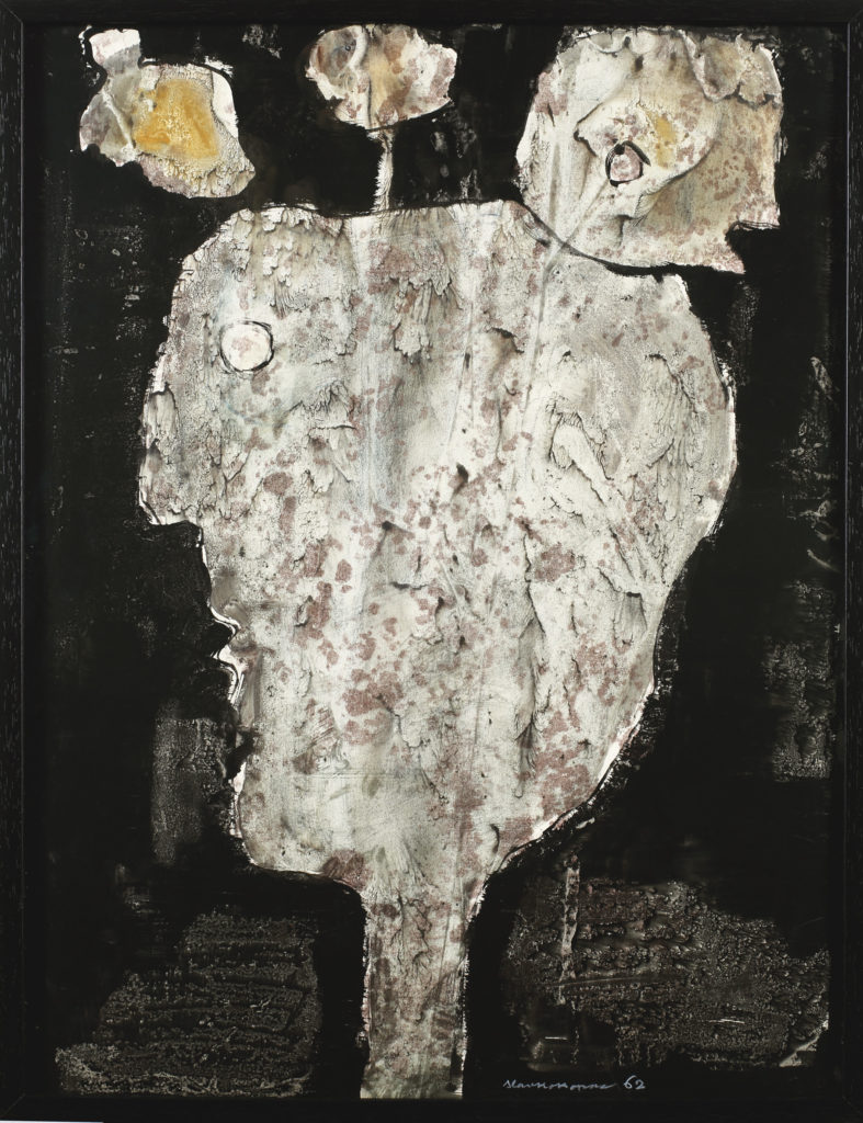 A son pouvoir de faire surgir la vie de rien, d’inventer la pavane de deux beautés lointaines sur le médaillon d’une planche à découper, de retrouver dans les froissements du papier collé les frémissements et les grandes lignes du visage, nul ne doutera de la vertigineuse puissance lyrique de Kopac.